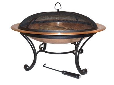 Exceptional Quality and Design Perfect for warming up on a cool evening at home, on the beach or where ever your travels take you. This Fire pit features a hammered copper pit bowl with spark screen and a three-leg wrought iron stand. It also serves as a decorative patio accent, beverage stand, or a unique indoor arrangement. Features: Dimensions: 30" Dia. x 12" H Weight: 34 lbs Poker, log grate, and cover included Bowl is constructed of durable copper. Base is constructed of heavy duty wrought iron Assembles and disassembles quickly and easily Includes hooked-poker for removing hot screens Keep your fire safely controlled Crack resistant and usable year-round Low Price Guarantee