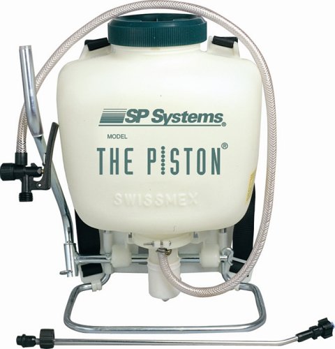The SP Systems Piston 4-gallon 120 psi backpack sprayer comes with an external piston pump capable of generating a maximum 120 psi of pressure. It features heavy-duty adjustable padded shoulder straps, Viton/Nytril seals and O-ring for extended life, a 20-inch brass wand, and adjustable brass nozzle with fanning capabilities. The 4-gallon backpack sprayer also includes 47-inches of industrial hose, a solid steel pump handle, pump handle grip, lid carrying handle, pistol grip and filter, and tank mouth strainer that fits onto the 6-inch tank mouth. The backpack sprayer measures approximately 22-by-15-inches and is capable of applying herbicides, insecticides, liquid fertilizers, and diesel, as well as working with oil or solvent-based products. It is backed by a 6-month limited manufacturer's warranty.